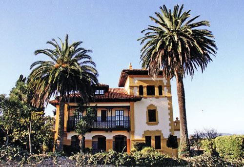 Al lado de la iglesia de santiago encontramos otro ejemplar de arquitectura indiana, en el que se ha optado por las líneas clásicas. Lo poco que se puede contemplar desde el exterior está dominado por los frontones que coronan los vanos del primer piso. Poco más se aporta a la presentación de las fachadas, si no es el leve señalamiento horizontal de las hiladas o el tono verde de las contraventanas de lajas. Lo más interesante de la villa se encuentra en el jardín. Se trata de una imagen femenina de tamaño real que está realizada con sugerentes líneas cubistas.